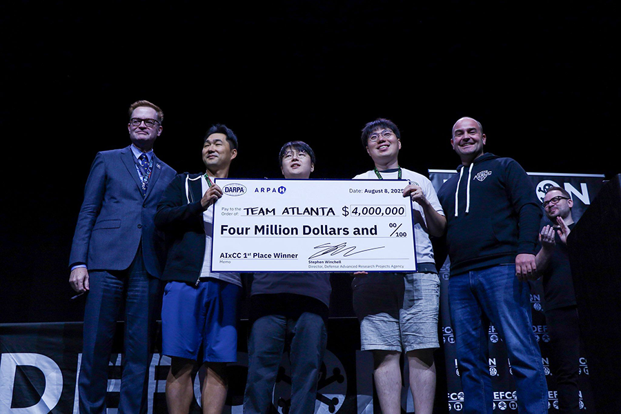 전산학부 한형석 동문(박사 졸업)과 윤인수 동문(학사 졸업, 현 전기및전자공학부 부교수)이 미국 국방고등연구계획국(DARPA)이 주관한 세계 최대 AI 보안 기술 경진대회 ‘AI 사이버 챌린지(AIxCC)’에서 최종 우승한 ‘팀 애틀란타’의 우승상금 중 1억 5천만 원을 모교 KAIST에 기부했다.